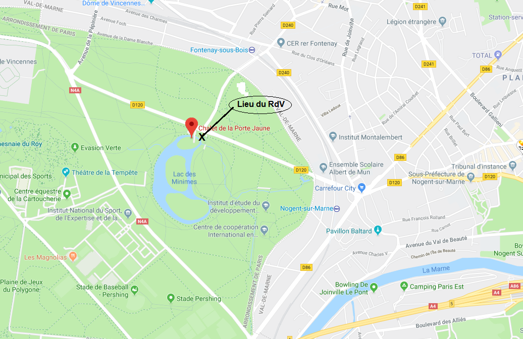 Bois de Vincennes, esplanade de la Porte jaune. Lieu du rendez-vous.